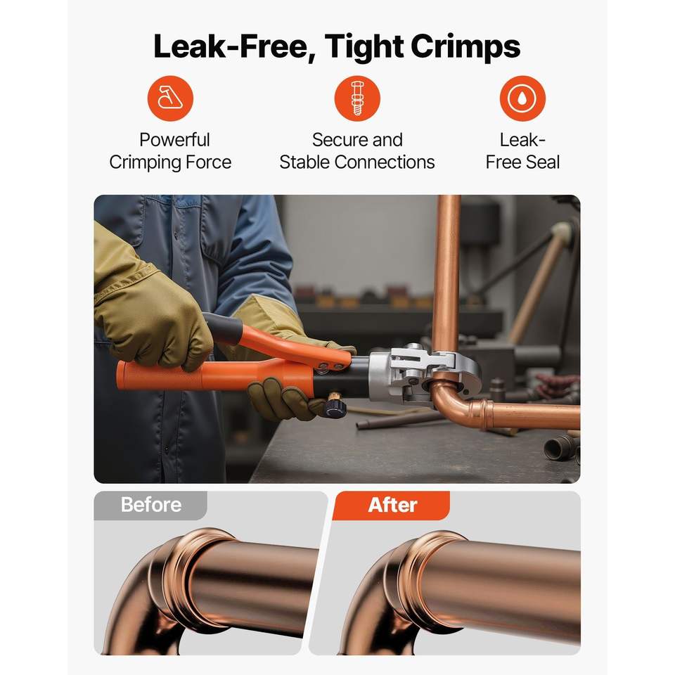 เครื่องมือจีบข้อต่อทองแดงแบบไฮดรอลิก ขนาด 1/2" 3/4" 1" พร้อมหัวจีบทองแดง สำหรับท่อทองแดงขนาด 3/8" 1/2" 5/8" 3/4"