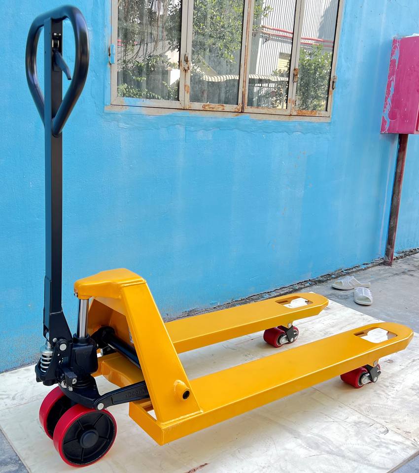 รถยกพาเลทไฮดรอลิกแบบมือโยก 2.5 ตัน ขนาดงา 550x11500 มม. ได้รับการรับรองมาตรฐาน CE ใช้ได้ทั้งภายในและภายนอกอาคาร