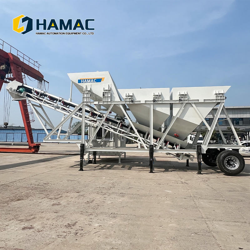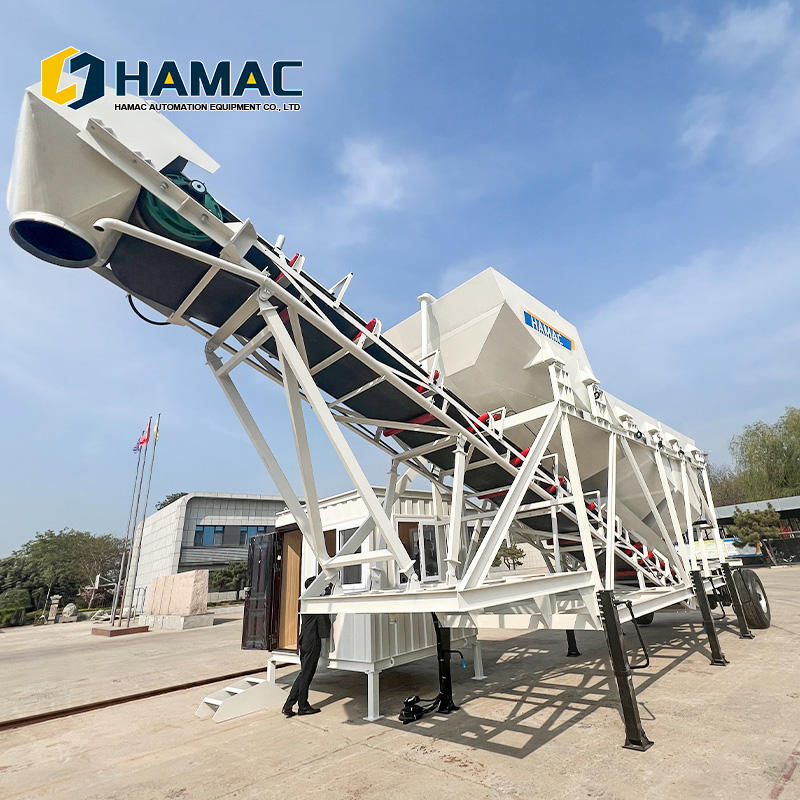 เครื่องผสมคอนกรีตเคลื่อนที่แบบไฮดรอลิกพร้อมเกียร์บ็อกซ์ ควบคุมด้วย PLC ขับเคลื่อนด้วยมอเตอร์ ยี่ห้อ HAMAC รุ่นใหม่ล่าสุด ขนาดเล็ก พกพาสะดวก พร้อมใช้งาน
