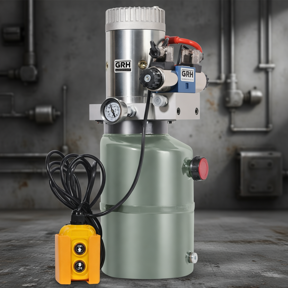 ชุดจ่ายกำลังไฮดรอลิกแบบกำหนดเอง 220V DC 24V 48V 12V ชุดจ่ายกำลังไฮดรอลิกสำหรับรถยก รถพ่วง ชุดวาล์วควบคุมแบบแมนนวล