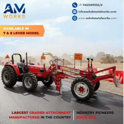 เกรดเดอร์ติดรถแทรกเตอร์ระบบไฮดรอลิก พร้อมมอเตอร์ ใบมีดยาว 10 ฟุต ปรับเอียงได้ 20 องศา สำหรับงานก่อสร้างถนน