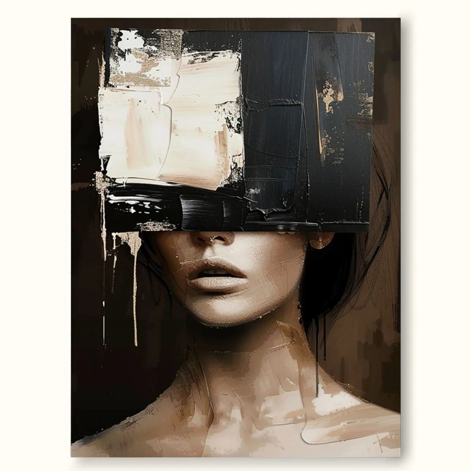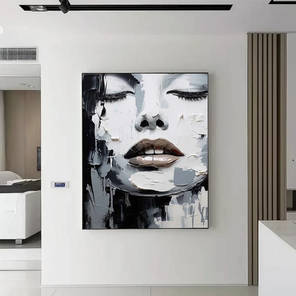 ภาพวาดสีน้ำมันบนผ้าใบลายภาพเหมือนนามธรรมสมจริง งานศิลปะตกแต่งบ้าน ภาพวาดทำมือแบบมีพื้นผิว 3 มิติ