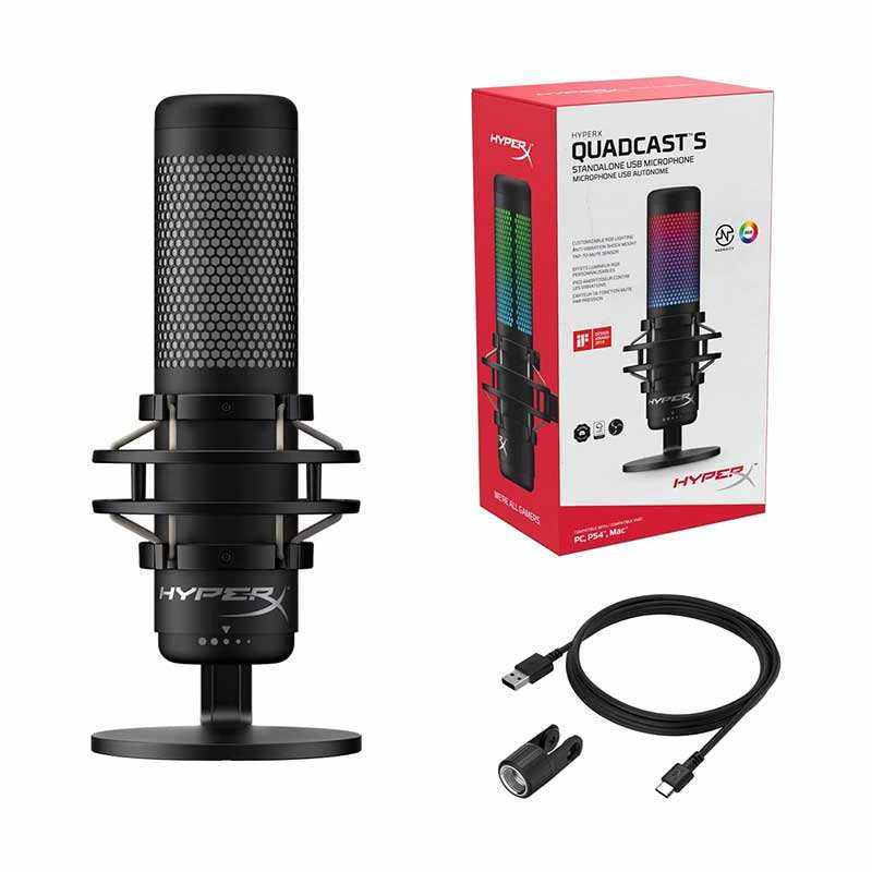 ไมโครโฟนไดนามิกแบบมีสาย HyperX QuadCast S RGB สำหรับการถ่ายทอดสดกีฬา รองรับทุกทิศทาง เหมาะสำหรับคอมพิวเตอร์ตั้งโต๊ะ วัสดุทำจากพลาสติก