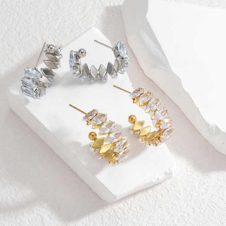 ต่างหูแบบหนีบหุ้มทอง PVD สแตนเลสสตีล ประดับเพชรซิร์คอน สำหรับผู้หญิง ไม่ก่อให้เกิดอาการแพ้ ไม่หมองคล้ำ ขายส่ง ทันสมัย