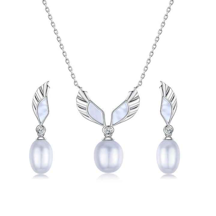 ชุดเครื่องประดับสำหรับผู้หญิงปลอดสารก่อภูมิแพ้ S925เงินสเตอร์ลิงไข่มุกน้ำจืดธรรมชาติมีสไตล์และหรูหรา