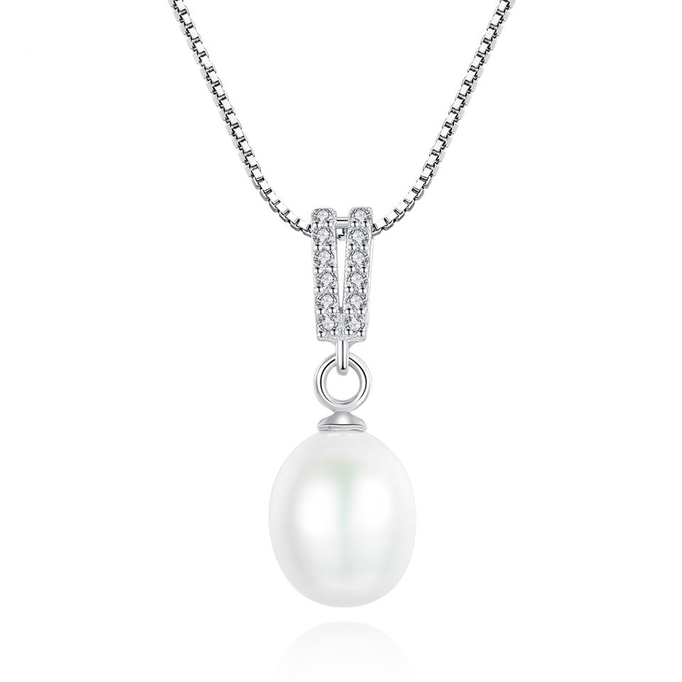 Hypoallergenic S925 Sterling Silver Zirconia Pearl Pendant with Box Chain Luxury Women's Jewelry Wholesale