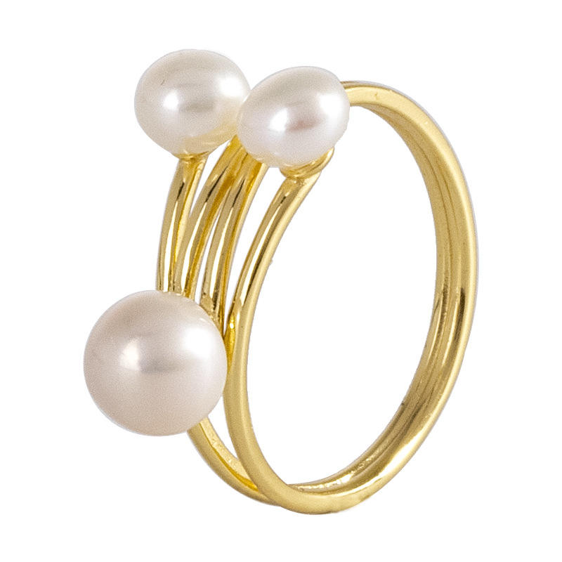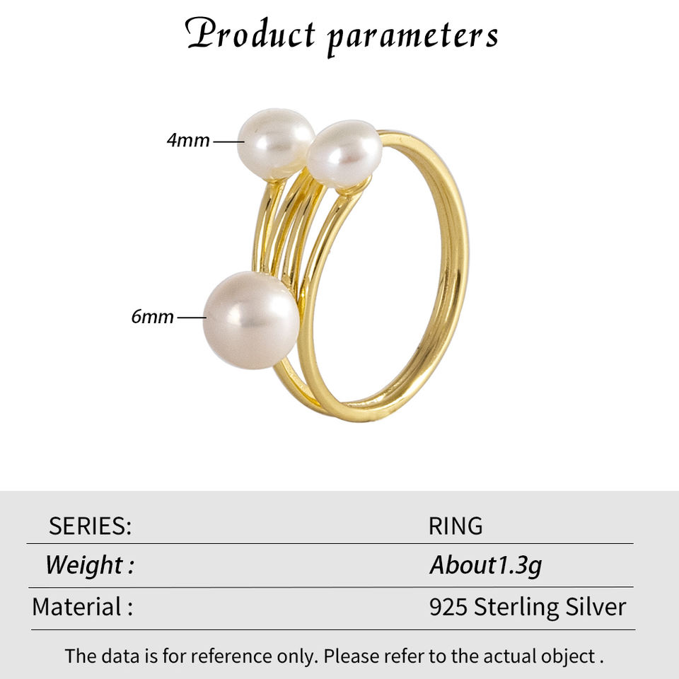 แหวนเงินแบบดั้งเดิมเครื่องประดับแฟชั่นสำหรับผู้หญิงแหวนไข่มุกน้ำจืดชุบทองสวยงาม S925