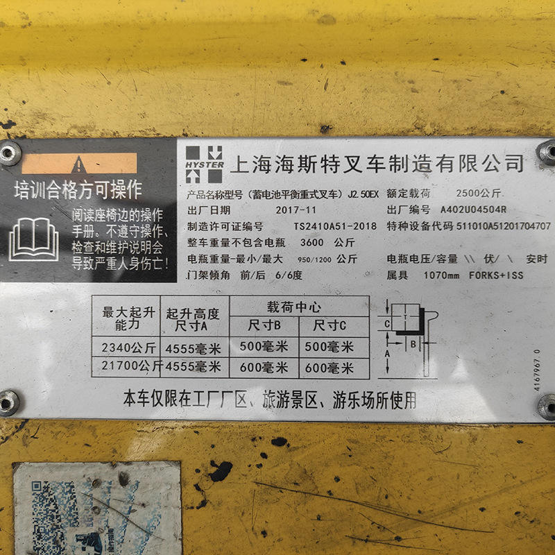 รถยกไฟฟ้าไฮสเตอร์ 2.5 ตัน เสาสามท่อน ขับเคลื่อนล้อหลัง มือสอง แบบถ่วงน้ำหนัก