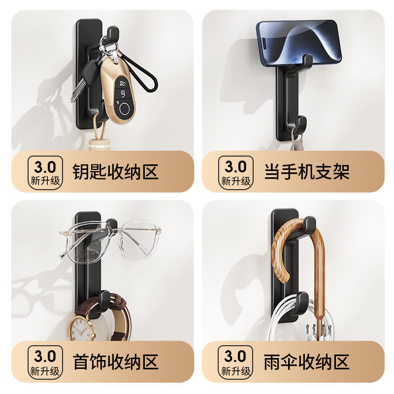 Hytsrtlsqllks Wall Hooks Rectangle Self-Adhesive 5 Pack Black For Kitchen Bathroom Coat Hat Storage