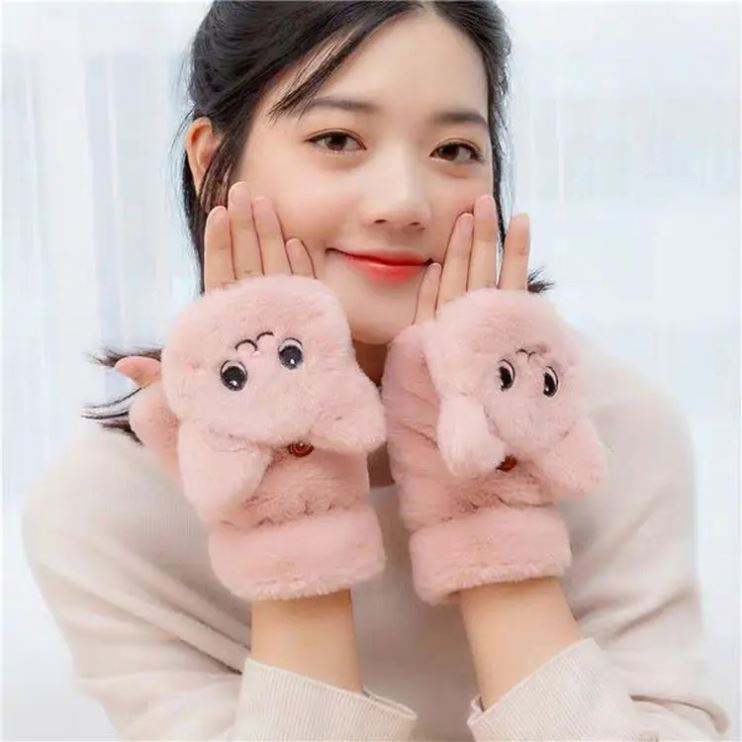 ถุงมือขนนุ่มลายการ์ตูนน่ารักสำหรับฤดูใบไม้ร่วง/ฤดูหนาว รุ่น I-0234 แบบเรียบง่าย ใช้หน้าจอสัมผัสได้ เหมาะสำหรับใช้ในชีวิตประจำวัน กิจกรรมกลางแจ้ง นักเรียน เขียนหนังสือ ดีไซน์แบบพับได้