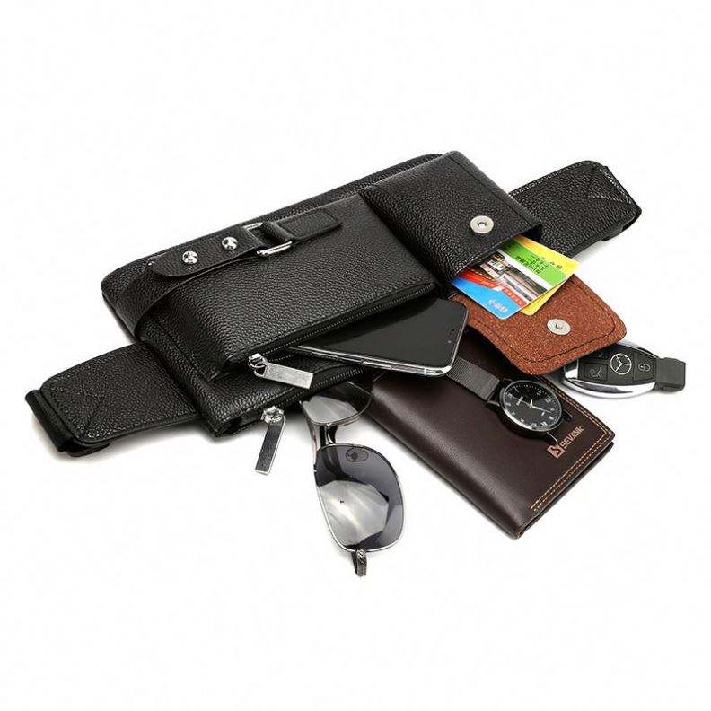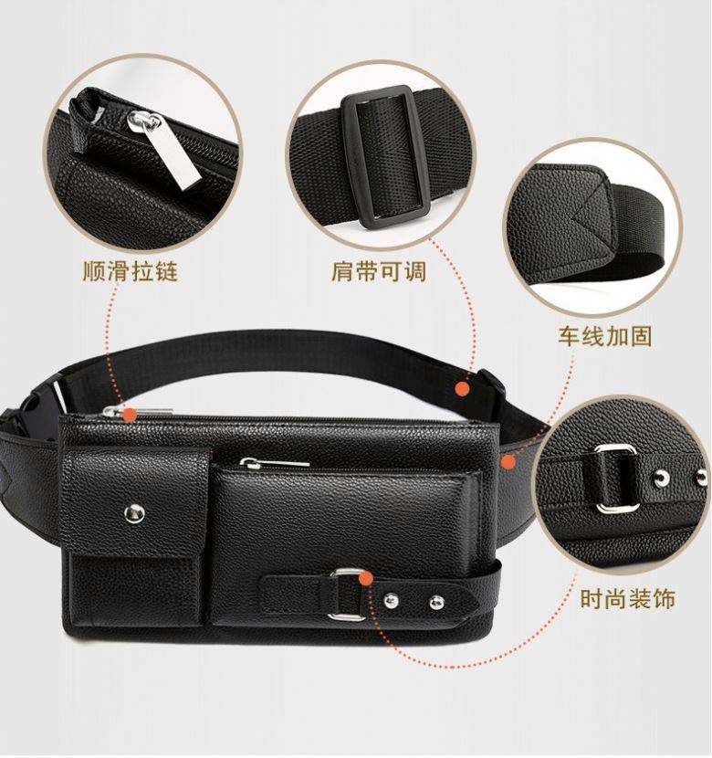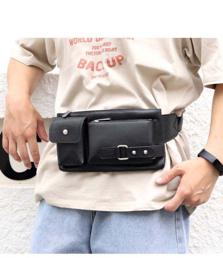 กระเป๋าคาดเอวหนัง PU สำหรับผู้ชาย รุ่น I-0326 ดีไซน์เรียบง่าย เหมาะสำหรับกิจกรรมกลางแจ้ง พักผ่อน สีดำ ใช้ได้ทั้งเดินทางและทำธุรกิจ