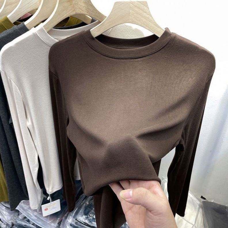 เสื้อยืดแขนยาวถักทรงลำลองสำหรับผู้หญิง รุ่น I-0383 พร้อมเสื้อซับใน ทรงเข้ารูป ระบายอากาศได้ดี ผลิตจากอะคริลิก เหมาะสำหรับฤดูใบไม้ผลิและฤดูใบไม้ร่วง