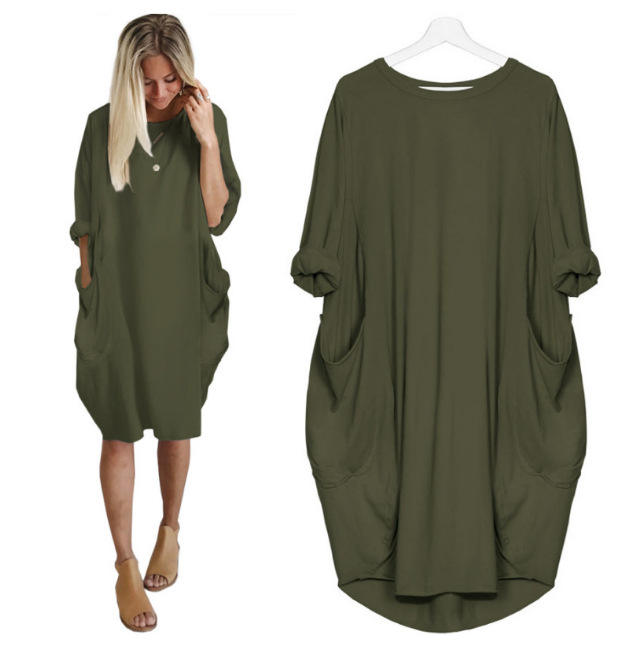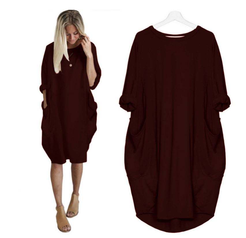 ชุดเดรสลำลองลายสก็อตแบบเรียบร้อยสำหรับผู้หญิง รุ่น I-0405 เป็นมิตรกับสิ่งแวดล้อม มีกระเป๋า แขนยาวปกติ คอทรงโอ ความยาวคลุมเท้า ไซส์พลัส