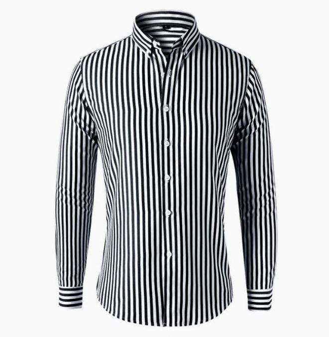 เสื้อเชิ้ตแขนยาวผู้ชาย I-0512 รุ่นสปริง/ออทั่ม ทรงเข้ารูปทันสมัย สไตล์ลำลองสำหรับวัยรุ่น เสื้อเชิ้ตผู้ชายลายทาง