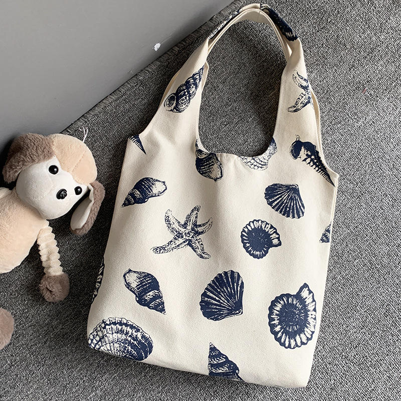 กระเป๋าผ้าแคนวาสขนาดใหญ่ I-1033 สำหรับช้อปปิ้ง รับสกรีนโลโก้ตามสั่ง แบบสะพายข้างเดียว สไตล์มินิมอล งานศิลปะ น่ารัก