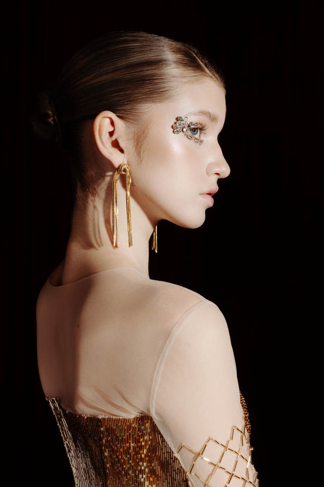 สี:ลูกไม้สีขาว & คริสตัลสีเหลือง
