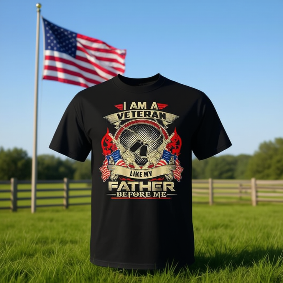 ฉันเป็นทหารผ่านศึกเหมือนพ่อของฉันในอดีต เสื้อยืดสีดำ เสื้อโปรโมชั่นสำหรับผู้ชาย