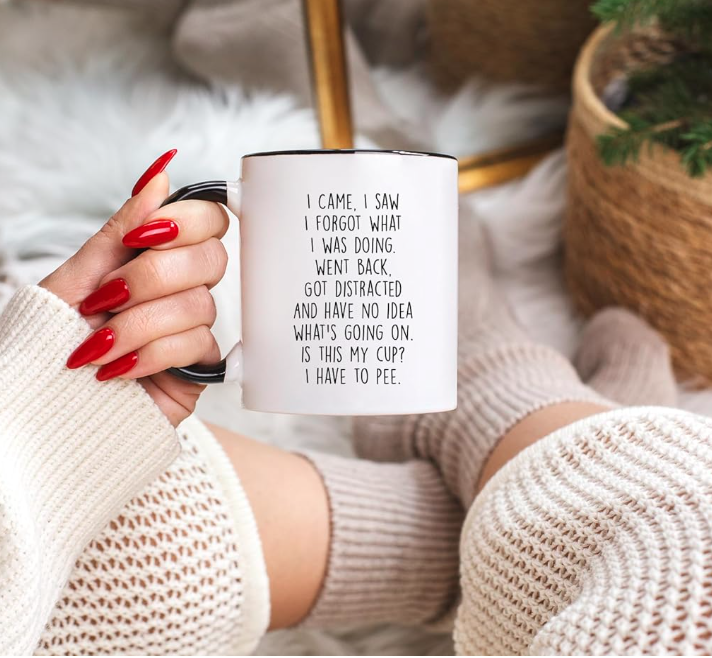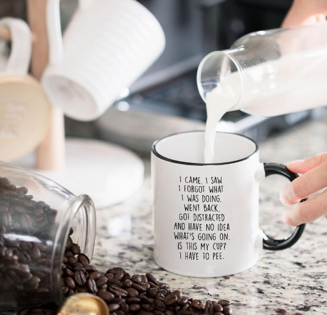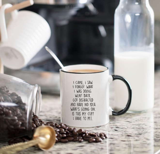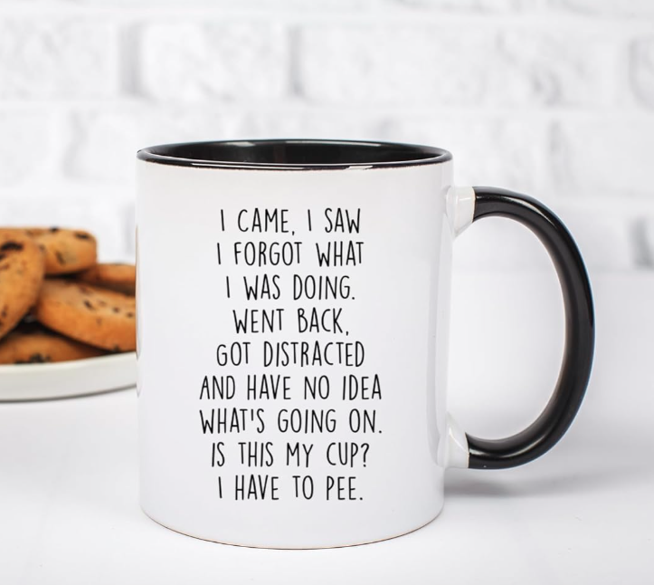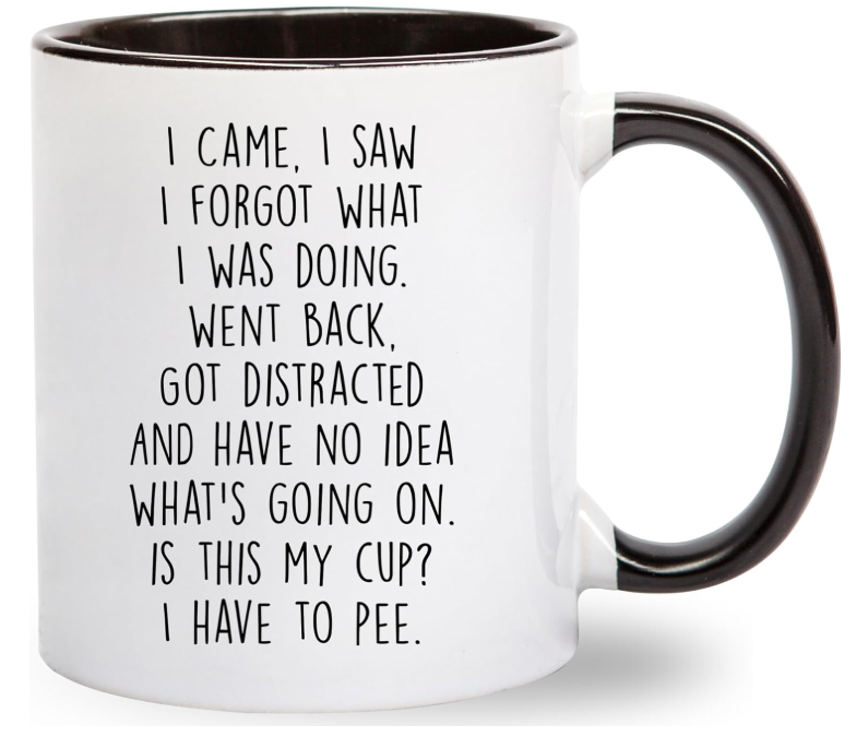 แก้วเซรามิคคลาสสิก "ฉันมา ฉันเห็น ฉันลืม" - ของขวัญสำหรับคุณแม่ คุณพ่อ คุณย่า คุณปู่ แก้วกาแฟสำหรับทำงานและเกษียณอายุ ขนาด 11 ออนซ์ ใช้กับเครื่องล้างจานได้