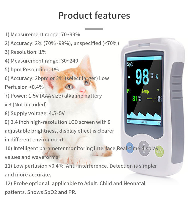 ชื่อผลิตภัณฑ์:เครื่องวัดออกซิเจนในเลือดสัตว์เลี้ยงแบบพกพา