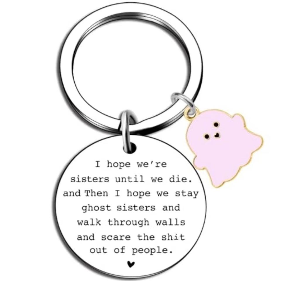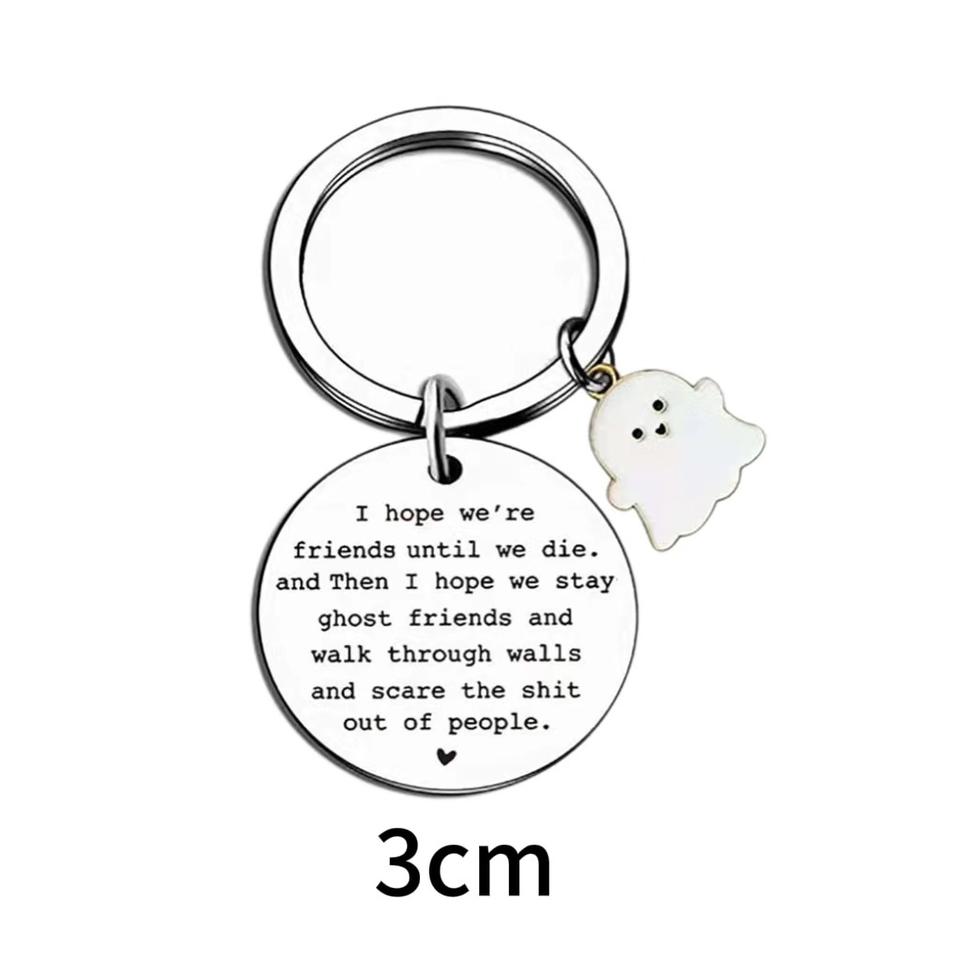 ฉันหวังว่าเราจะเป็นเพื่อนกันจนกว่าเราจะตายพวงกุญแจโลหะของขวัญฮาโลวีนพวงกุญแจสแตนเลส