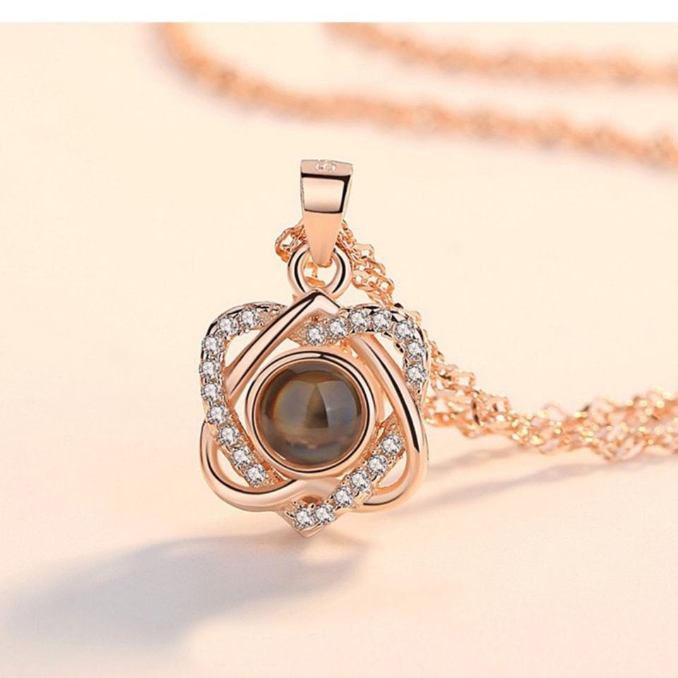 สร้อยคอ I Love You ฉายภาพ 100 ภาษา จี้รูปหัวใจ พร้อมสายสร้อย ของขวัญสำหรับแม่ ภรรยา แฟนสาว งานแต่งงาน วันเกิด