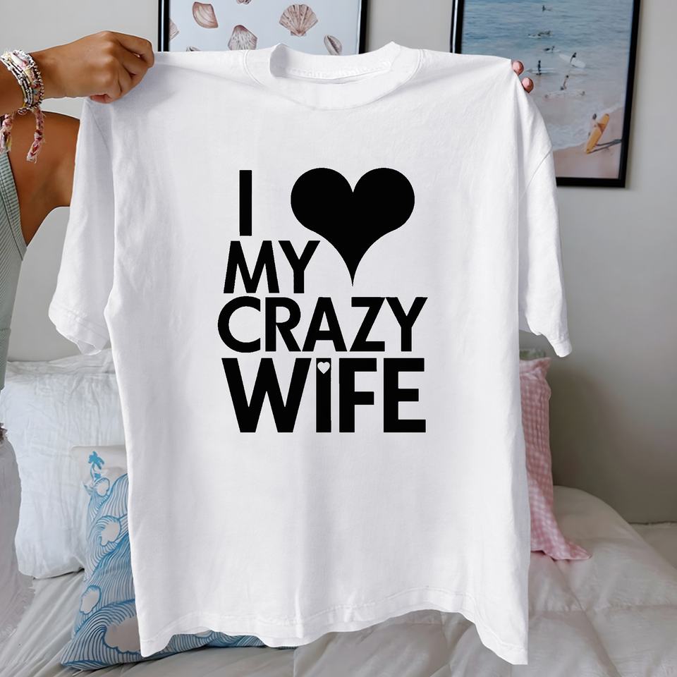 I My Crazy Wife เสื้อยืดผ้าฝ้ายแท้ใส่สบายสำหรับผู้หญิง