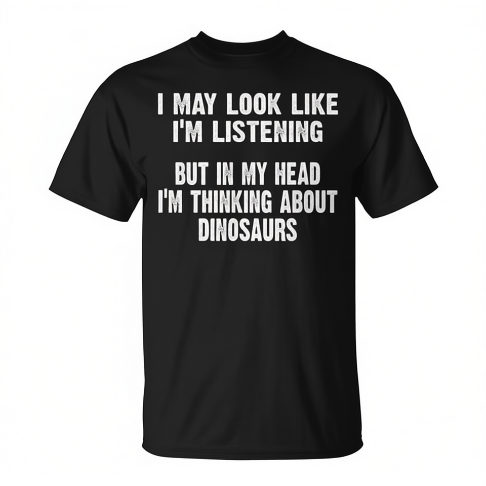 ฉันอาจดูเหมือนกำลังฟัง แต่ในใจฉันกำลังคิดถึงเสื้อยืดลายไดโนเสาร์