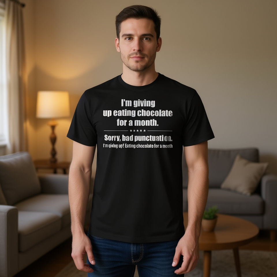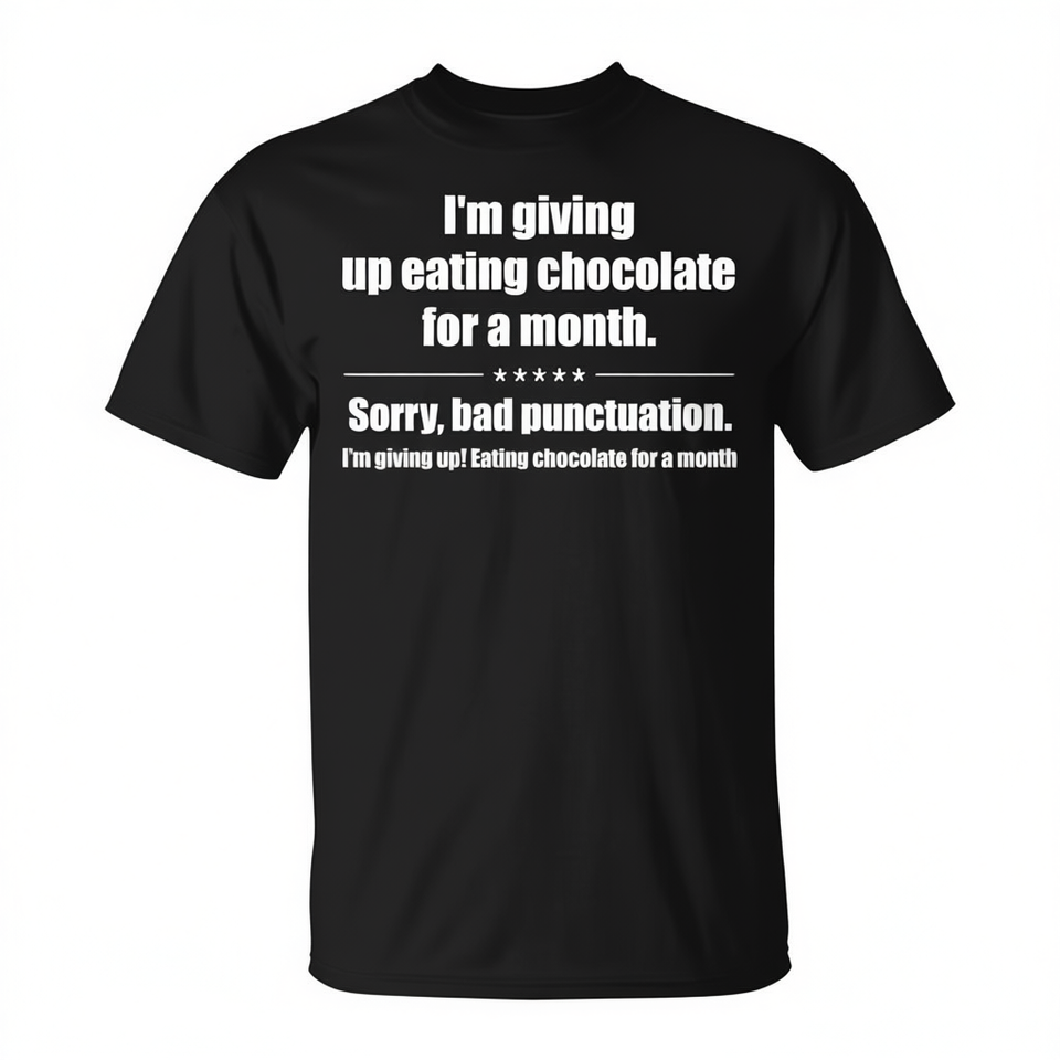ฉันจะเลิกกินช็อกโกแลต เสื้อยืดลายคำกลอนตลกๆ ขนาดผู้ใหญ่