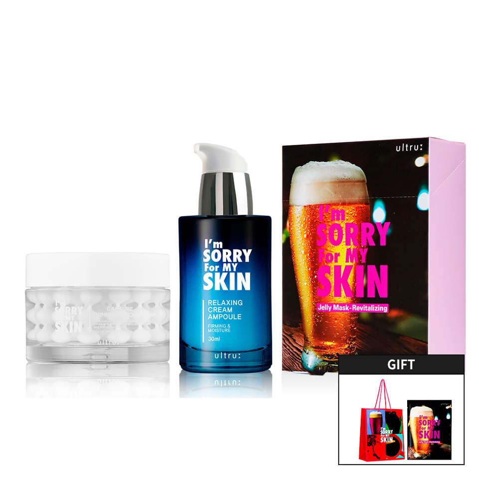 ครีมบำรุงผิวหน้าสูตรเข้มข้น I'm Sorry พร้อมแอมพูลผ่อนคลาย + มาส์กเจลลี่ ชุดผลิตภัณฑ์ดูแลผิวเพื่อฟื้นฟูผิว