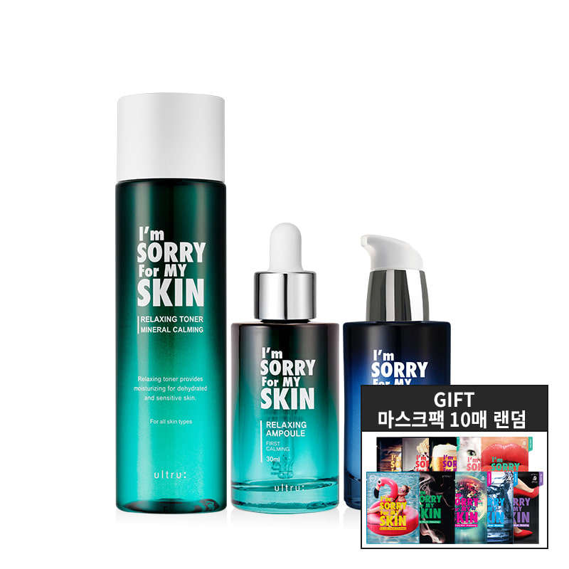 ฉันขออภัยสำหรับผลิตภัณฑ์ดูแลผิวของฉัน ชุดบำรุงผิว 3 ขั้นตอน โทนเนอร์ผ่อนคลาย + แอมพูลผ่อนคลาย + แอมพูลครีม ชุดดูแลผิวหน้ามิเนอรัล พร้อมขวดของขวัญ