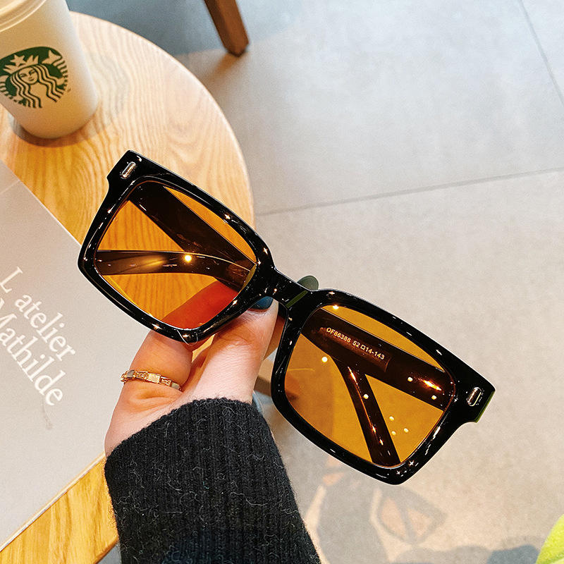 I2 86388 แว่นกันแดดทรงสี่เหลี่ยม UV400 เลนส์พีซี สำหรับทุกเพศ สีฟ้า เทา เปลือกสีเหลือง เลนส์ประเภท 3 แว่นกันแดด