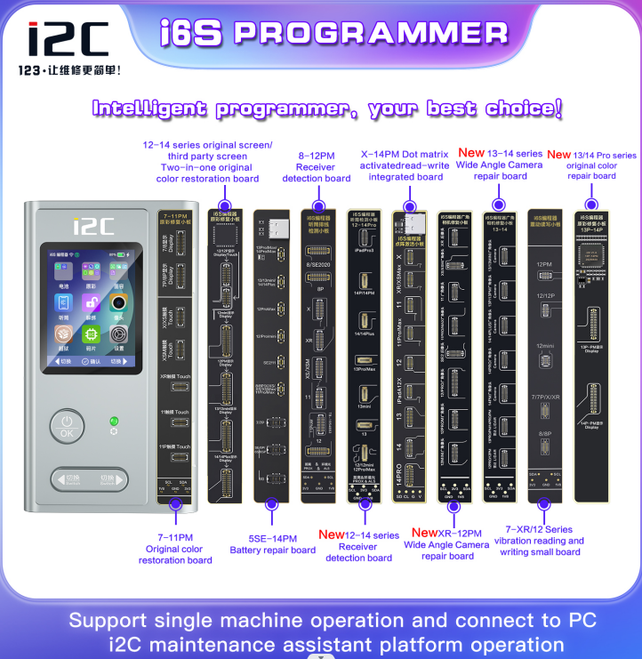 I2C I6s Programmer LCD Screen/Battery Recovery Tester for iPhone 5SE 6 7 8 X 11 12 13 14 Pro Max True Tone/Camera/Face ID Repair
