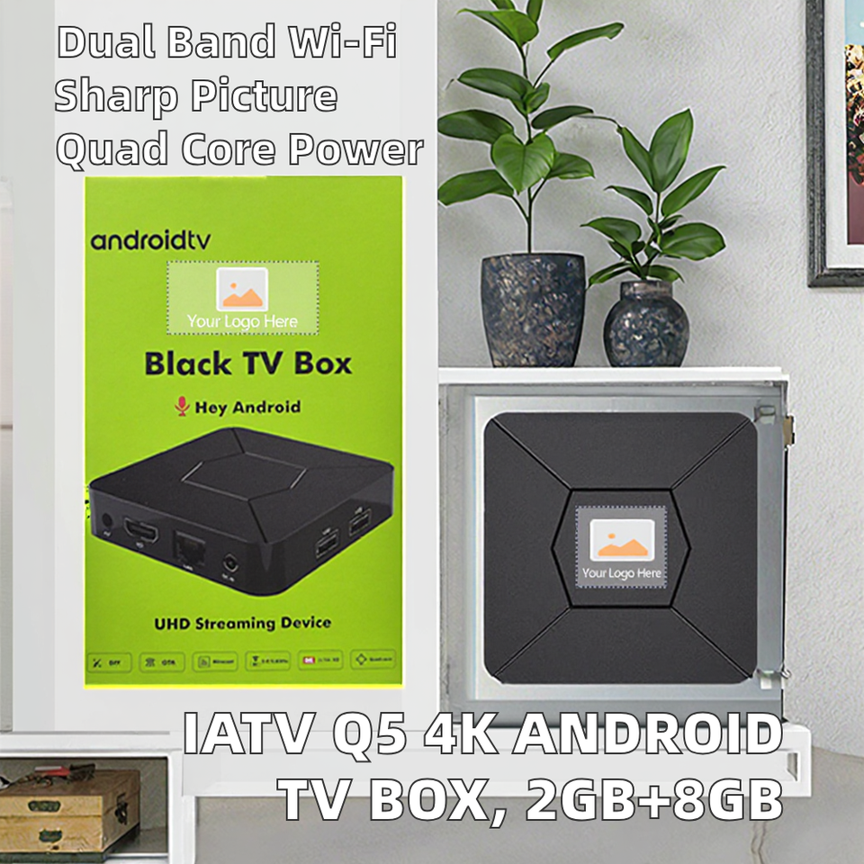 กล่องทีวี IATV รุ่น Q5 ระบบ Android 10 ชิปประมวลผล Allwinner H313 Quad Core แรม 2GB ความจุ 8GB รองรับ WiFi 5GHz บลูทูธ พร้อมรีโมทคอนโทรล กล่องสมาร์ททีวี 4K ระบบปฏิบัติการ OEM OTT ATV