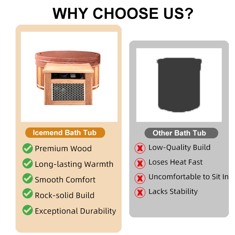 ICEMEND Factory Supply Freestanding Water Cooler Bathtubs Red Cedar Wooden Cold Plunge Ice Barrel with Stainless Steel Liner