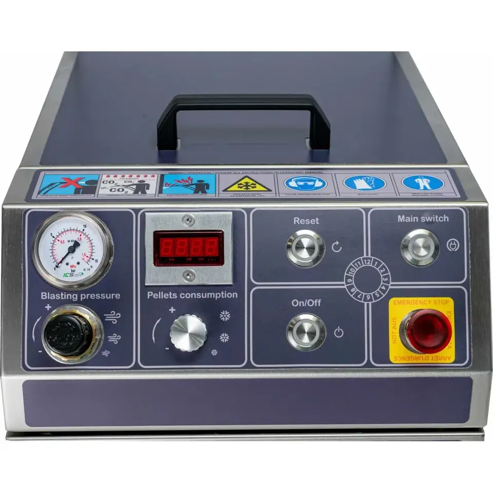 IC 110 E PLUS เครื่องพ่นน้ำแข็งแห้งแบบเคลื่อนที่ได้คุณภาพสูงเครื่องขจัดไขมันที่มีประสิทธิภาพสำหรับการทำความสะอาดอากาศรวมถึงพลั่วน้ำแข็ง