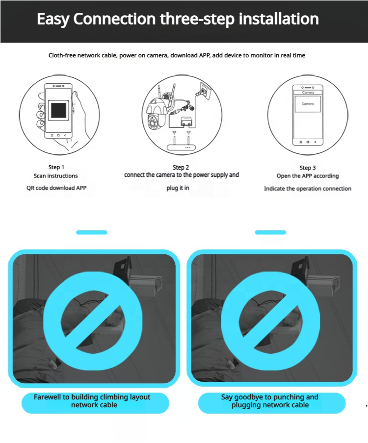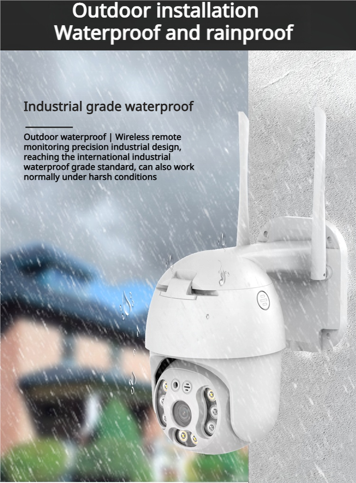 มนุษย์การติดตามการเคลื่อนไหว, ในตอนกลางคืน, ป่าเถื่อนหลักฐาน, การตรวจจับการเคลื่อนไหว, กันน้ำ / ฝนและแดด, Built-in ไซเรน, PAN-TILT, 2-Way Audio, Low Power