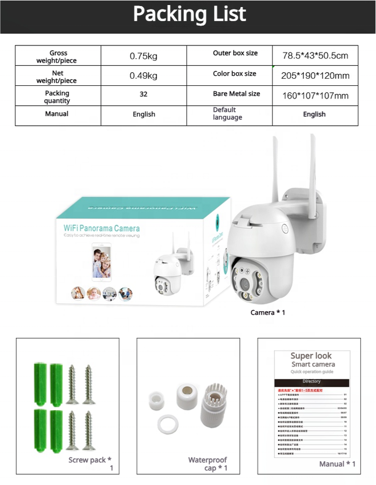 คุณสมบัติ:IP65/การมองเห็นตอนกลางคืนแบบสีเต็มรูปแบบ/การตรวจสอบตามเวลาจริง/การแจ้งเตือนแสงคู่