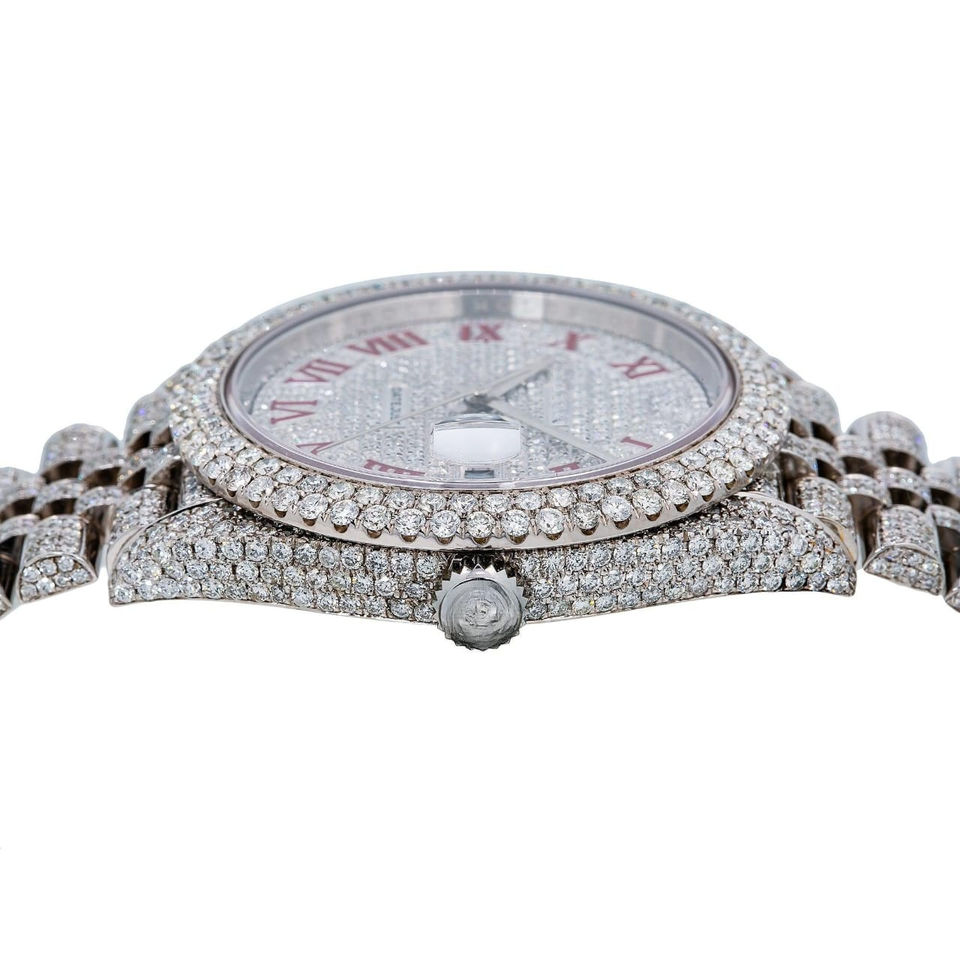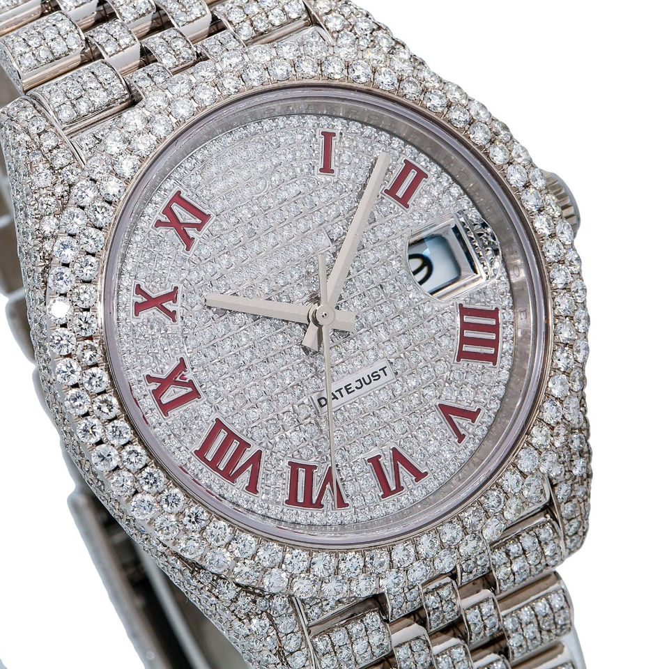 นาฬิกาอัตโนมัติสแตนเลส41มม. เพชรโมอิสเพชรสีแดงเลขโรมันมาร์กเกอร์หรูหราสไตล์ฮิปฮอปหน้าปัดอะนาล็อก