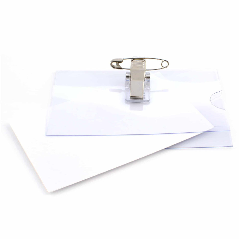 ที่ใส่ป้ายชื่อแบบแนวนอนทำจากพลาสติกพีวีซีสีใสมี100% ที่ใส่บัตรพร้อมหมุดนิรภัยและคลิปจระเข้