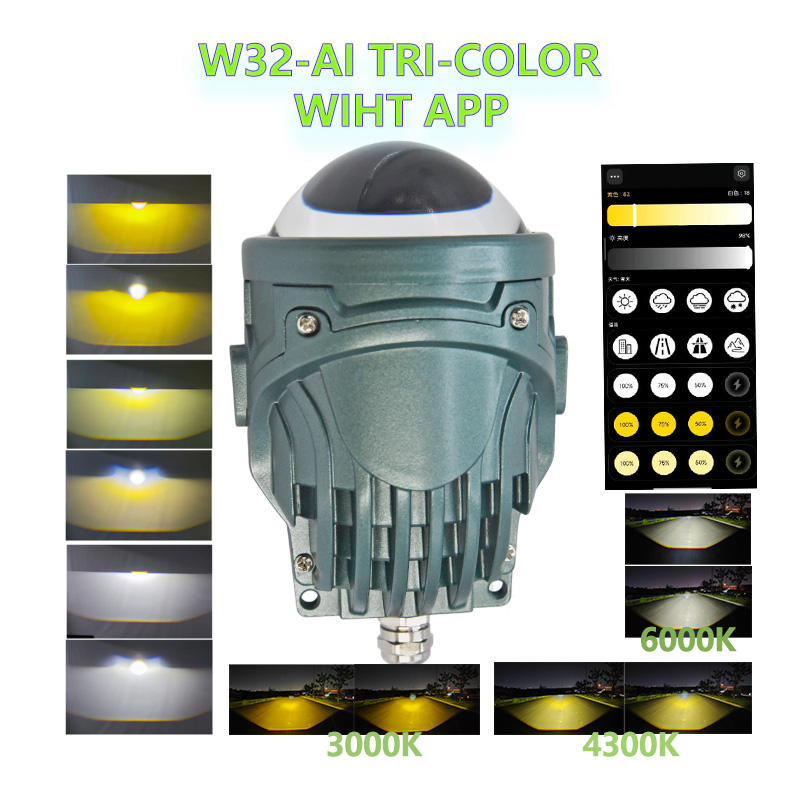 หลอดไฟรถยนต์ IDISON W32-AI ควบคุมสีผ่านแอพ สีฟ้า กันน้ำ ไฟสูง/ต่ำ 10/65w 9000lm โปรเจคเตอร์ไฟตัดหมอกสำหรับ TOYOTA ขนาด 3.0 นิ้ว