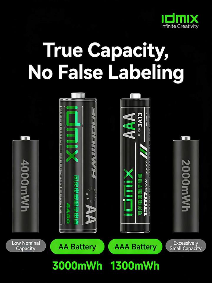 Idmix เครื่องชาร์จแบตเตอรี่ LCD อัจฉริยะ4ช่องสำหรับ AA AAA สามารถชาร์จได้แบตเตอรี่ Ni-Cd พร้อมอินพุต USB-C