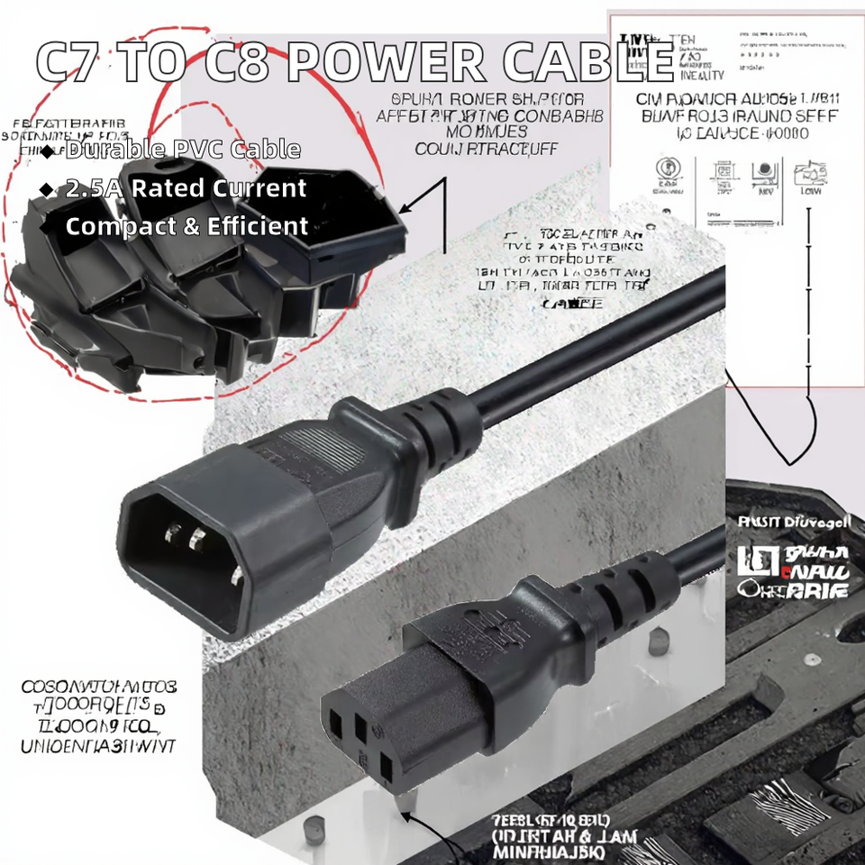 สายต่ออะแดปเตอร์ไฟฟ้าสำหรับเครื่องใช้ไฟฟ้าในบ้าน IEC 320 2-Pin C7 ตัวเมีย ถึง C8 ตัวผู้ รูปทรงเลข 8 ความยาว 0.3 เมตร รองรับกระแสไฟ 2.5 แอมป์