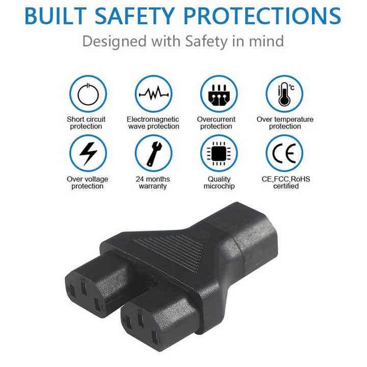 ชื่อสินค้า:อะแดปเตอร์ซ็อกเก็ตคอนเนคเตอร์ C13 เป็น C14 แบบ 2 ทาง