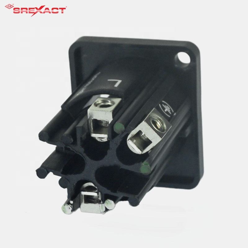 ขั้วต่อไฟหกเหลี่ยมด้านใน3ขา PA66สัญญาณเสียงและวิดีโอตัวผู้สีดำมาตรฐาน IEC