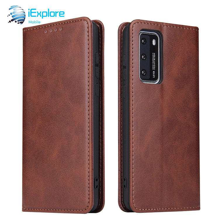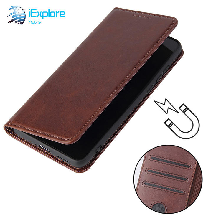Iexplore เคสฝาพับมีแม่เหล็กแข็งแรงเคสหนังแท้สำหรับซัมซุง S25ช่องเสียบการ์ดเคสโทรศัพท์ TPU แบบกระเป๋าสตางค์สำหรับ Huawei P60 Pro