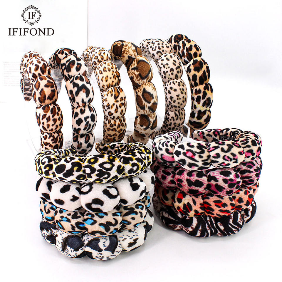 ที่คาดผมลายเสือดาว IFOND แบบถัก บุด้วยฟองน้ำ วัสดุผ้าโพลีเอสเตอร์ สำหรับผู้หญิง สวมใส่ในชีวิตประจำวัน ใช้สำหรับสปา แต่งหน้า และความงาม