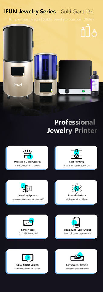 IFun เครื่องพิมพ์3D จอ LCD ขนาดยักษ์12K รุ่นใหม่เครื่องพิมพ์3D ขนาดเล็ก12K โมโนสำหรับหล่อเครื่องประดับผลิตภัณฑ์หล่อฟัน