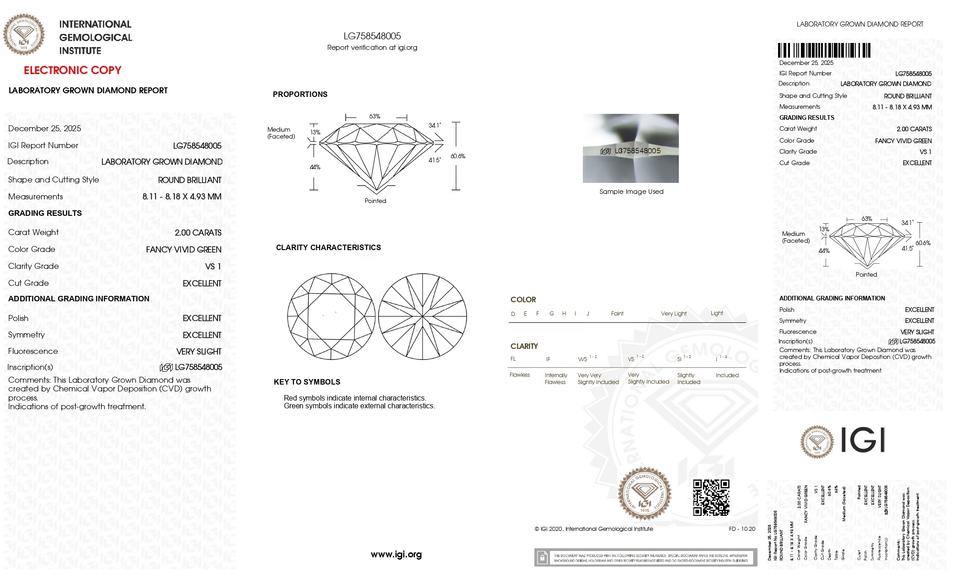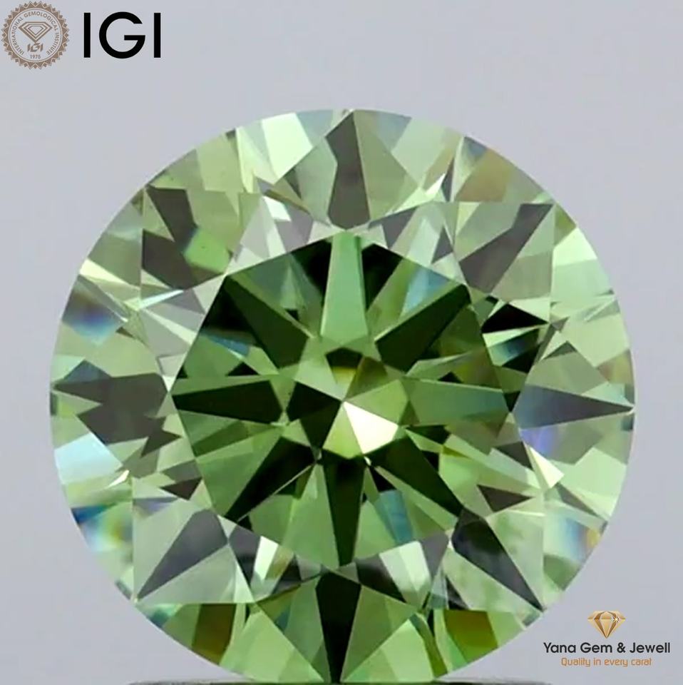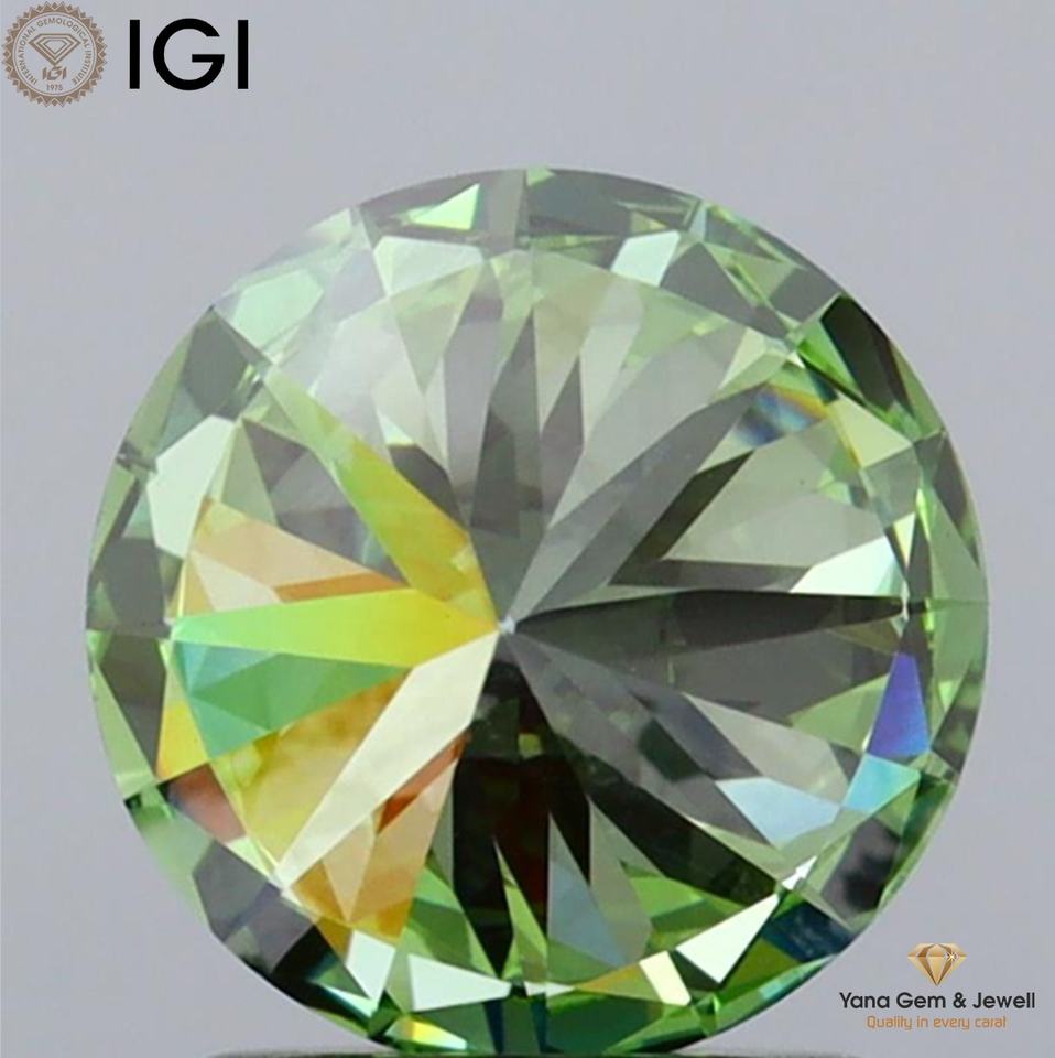 ใบรับรอง IGI 8.11 มม. สำหรับงานแต่งงาน เพชรทรงกลมพิเศษ 2.00 กะรัต เพชร CVD ที่เพาะเลี้ยงในห้องปฏิบัติการ ความสะอาดระดับ VS1 สีเขียวสดใสแฟนซี