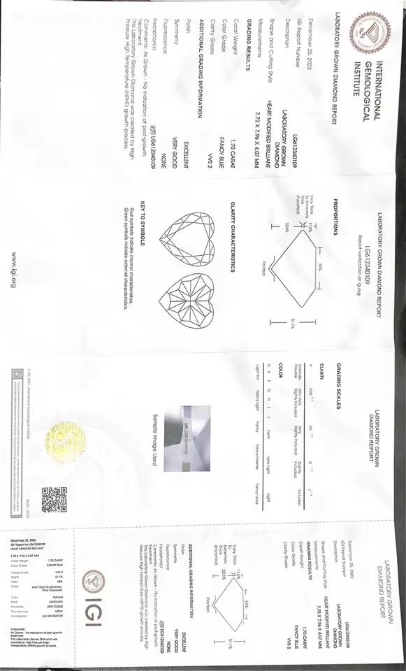 Igi 1ct-3ct cvd/hpht Def Color vvvs /vs ชี้แจงหัวใจห้องแลปเพชรที่ปลูกแบบหลวมเพชรที่ได้รับการปลูกฝัง