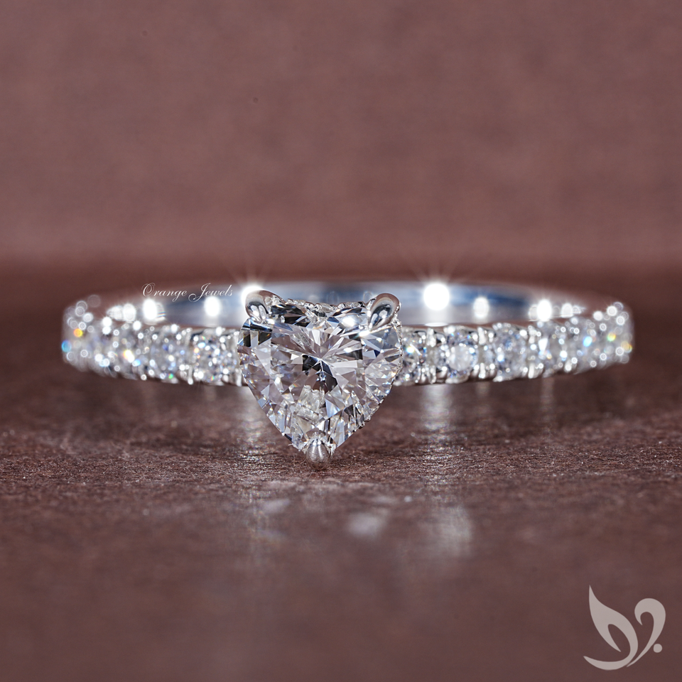 แหวนเพชรทรงหัวใจ 0.50 กะรัต ได้รับการรับรองจาก IGI เพชรเพาะเลี้ยงในห้องปฏิบัติการ ตัวเรือนทองคำแท้ 10K แหวนหมั้นแบบวงแหวนซ่อน